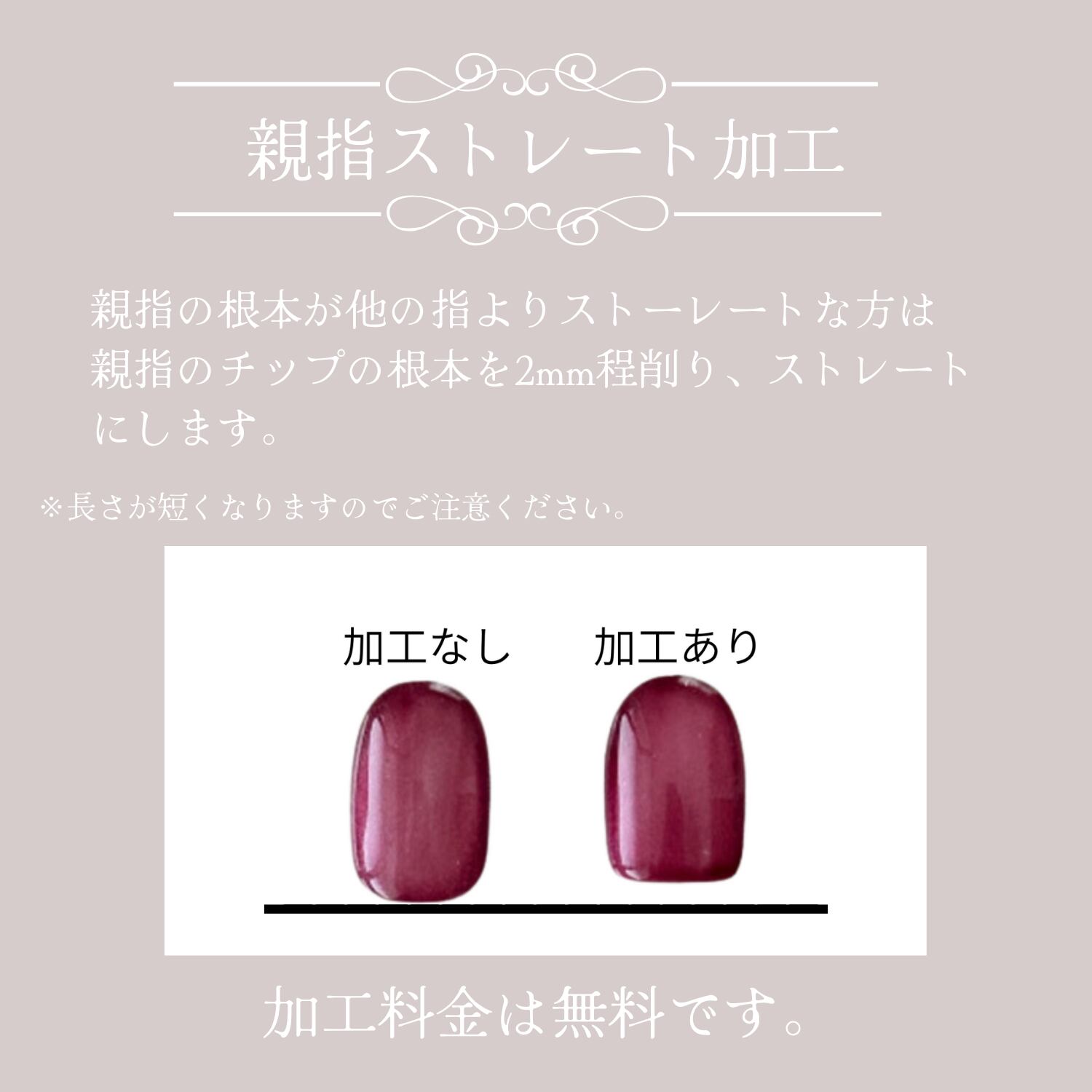親指ストレート加工が必要な方は下記の項目よりお申し込みください。